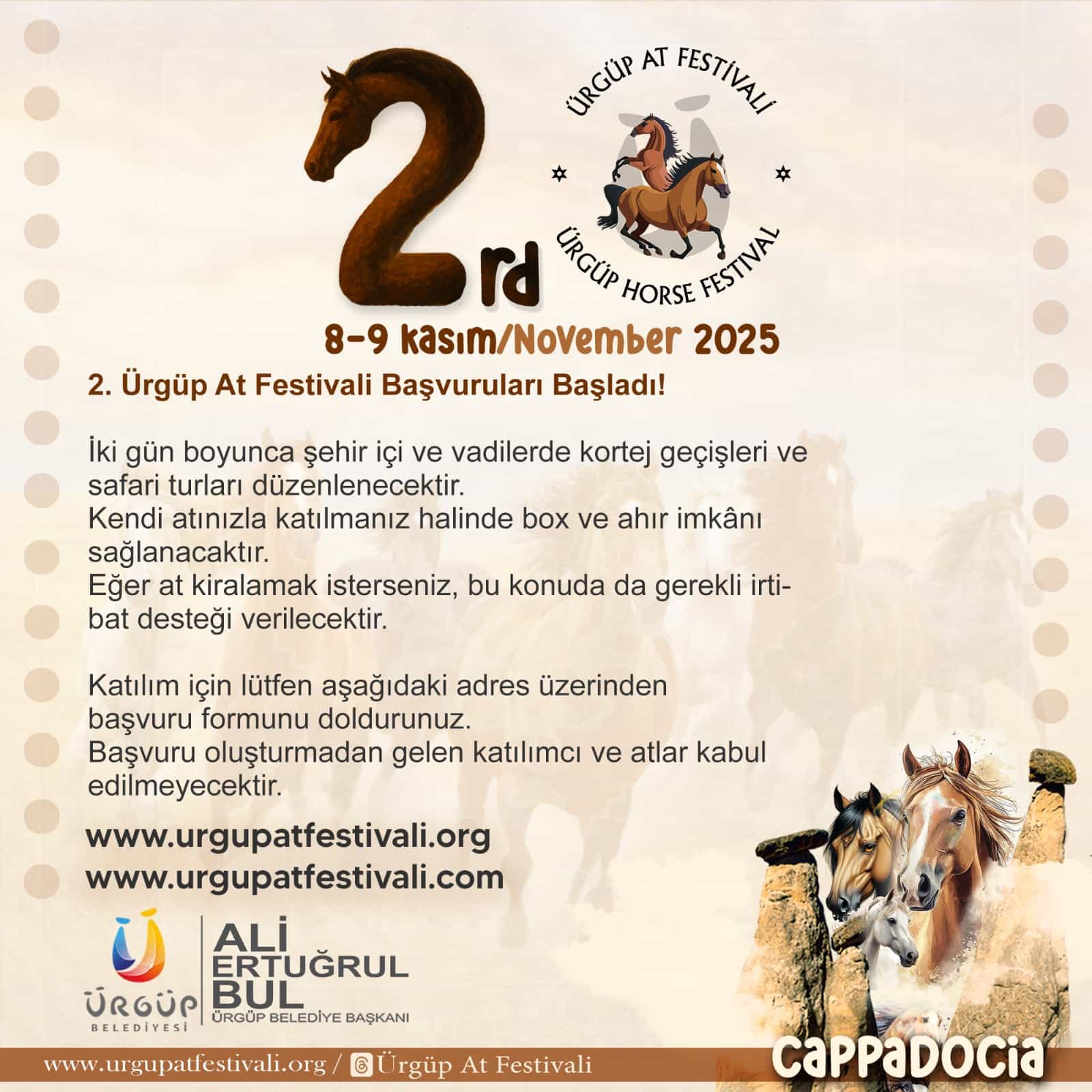 🏇 2. Ürgüp At Festivali Başvuruları Başladı!